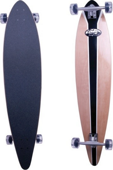 Robustes Longboard aus 9-fach verleimtem kanadischem Ahorn-Holz. Mit feinkörnigem schwarzem Griptape für einen stabilen Stand. Verchromte Randall 180 Trucks mit PU-Rollen (70 x 46 mm) sowie hochwertige ABEC 7 Kugellager sorgen für beste Laufeigenschaften. Wir empfehlen die Nutzung mit einer geeigneten Schutzausrüstung.- Altersempfehlung: 8+,