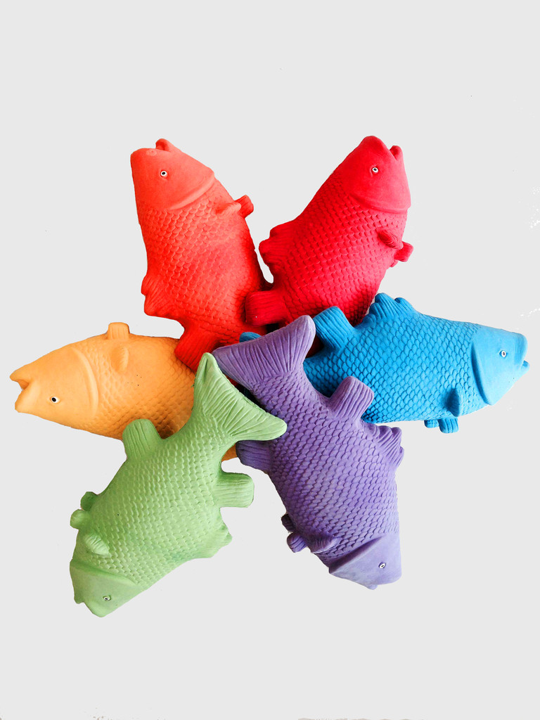 Diese Fische aus weichem Gummi kann man ohne aufwändiges Aquarium halten. Man kann sie als Abschlag-Gerät beim Jagdspielen, als koordinative Herausforderung beim Schnappball und für viele weitere coole Spielideen gebrauchen. Wie die Moorhühner haben auch die Fire Fishes ein Quietsch-Ventil, sodass sie lustige Geräusche von sich geben, wenn man sie knuddelt. Der Megaknüller für Kinder ebenso wie für Jugendliche.