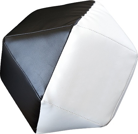 Der Tipp-Kick XXL Blite-Softball unterscheidet sich mit seiner eckigen Form und seinen zwei unterschiedlichen Farben zu herkömmlichen Bällen.