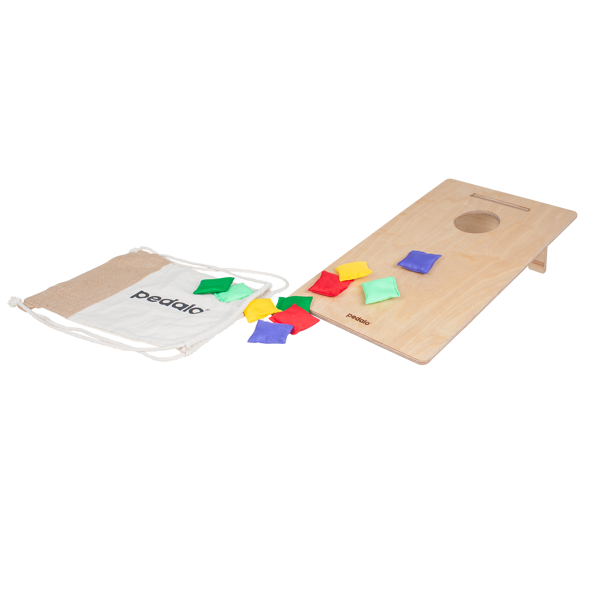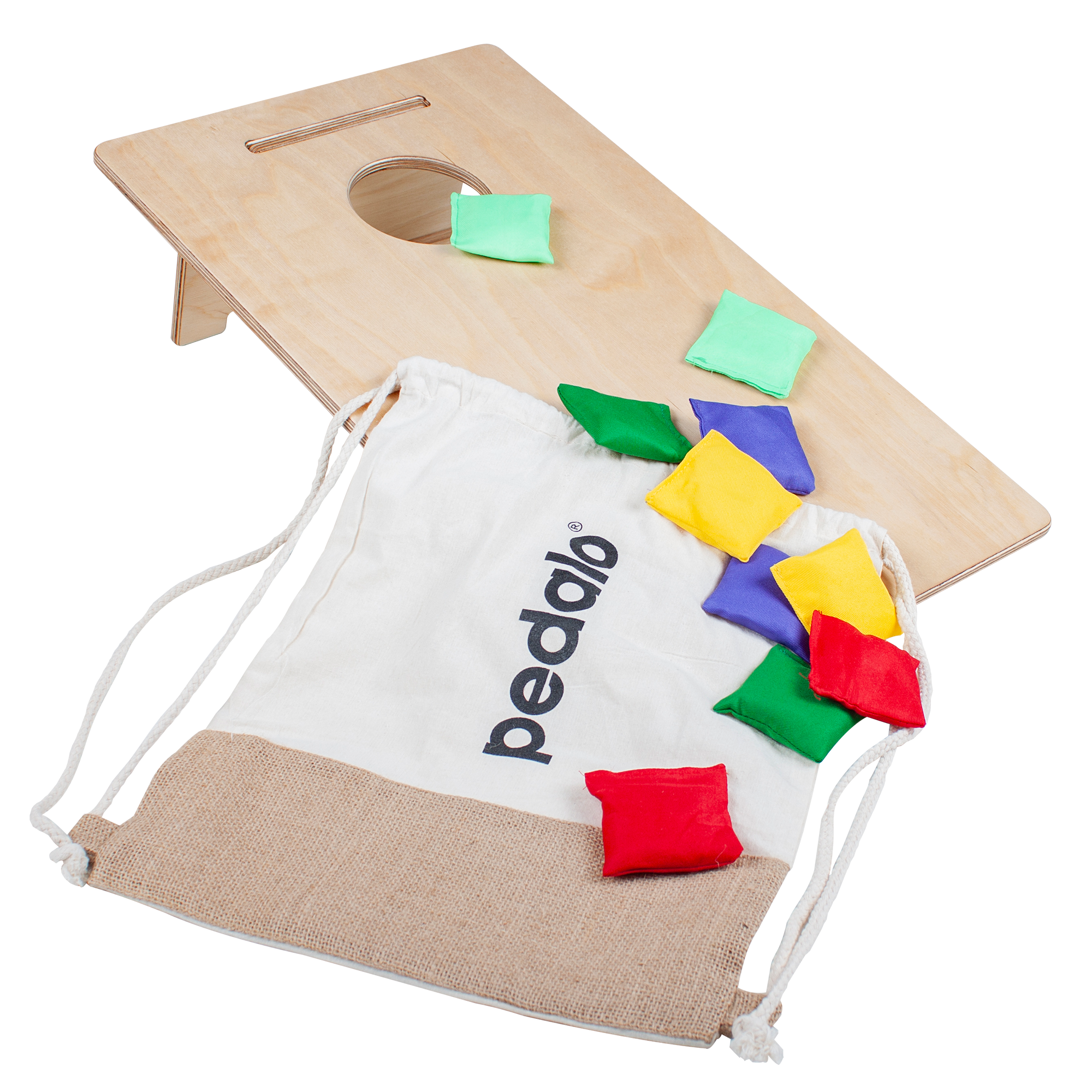 Das Pedalo Cornhole Kids ist ein sehr beliebtes Geschicklichkeits-Wurfspiel und wird allein oder im Team gespielt. Die Spieler versuchen gefüllte Säckchen in das Loch einer beliebig entfernten, zum Spieler hin flach abfallenden Holzplattform zu treffen, was dem Spiel u.a. auch die Namen Sackloch-Spiel oder Bean Bag eingebracht hat. Das Spiel wird im Freien, in Hallen und in größeren Räumlichkeiten gespielt.Die Wurfsäckchen unterscheiden sich pro Spieler in der Farbe, dadurch kann auch gemeinsam auf nur eine Holzplattform geworfen werden.