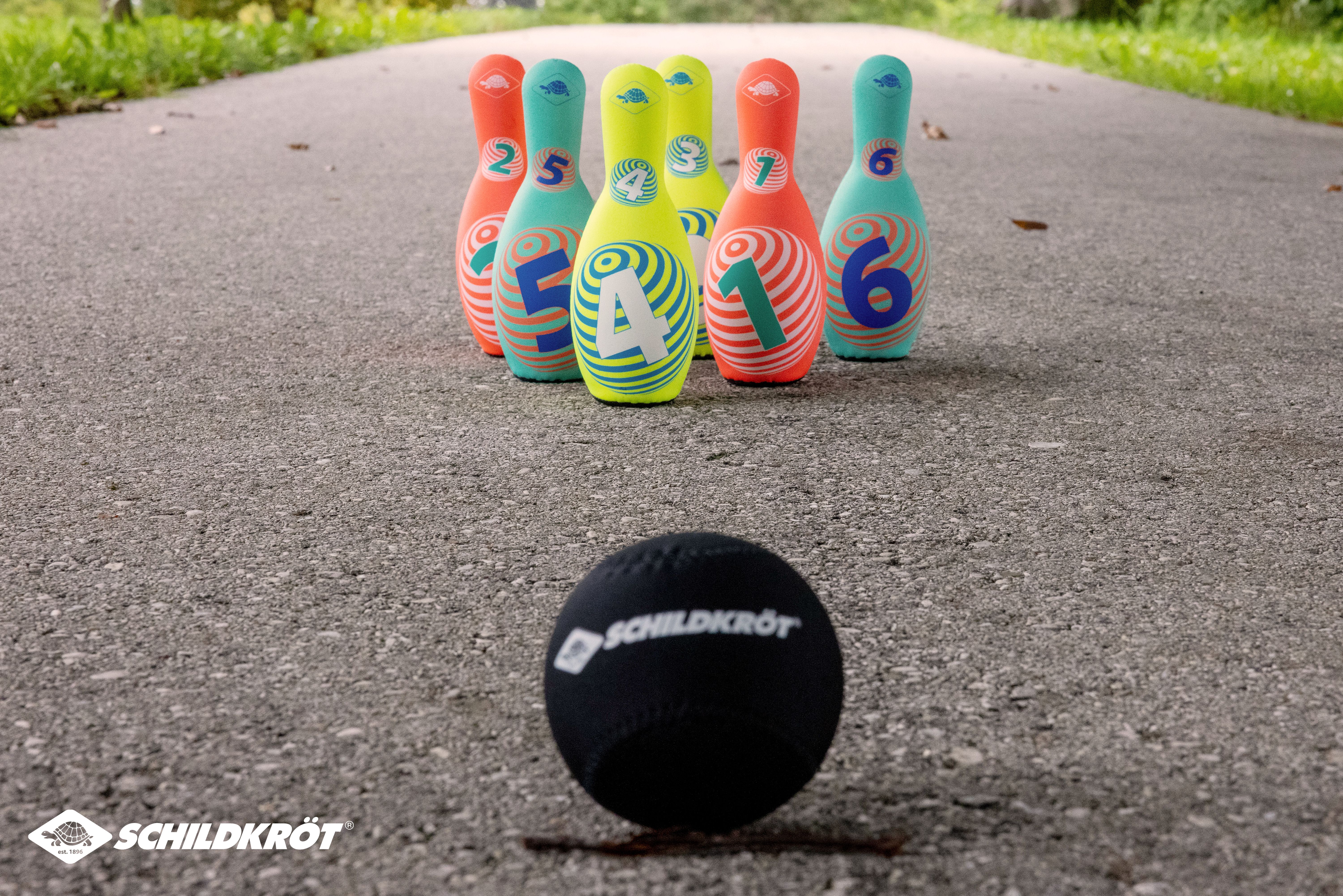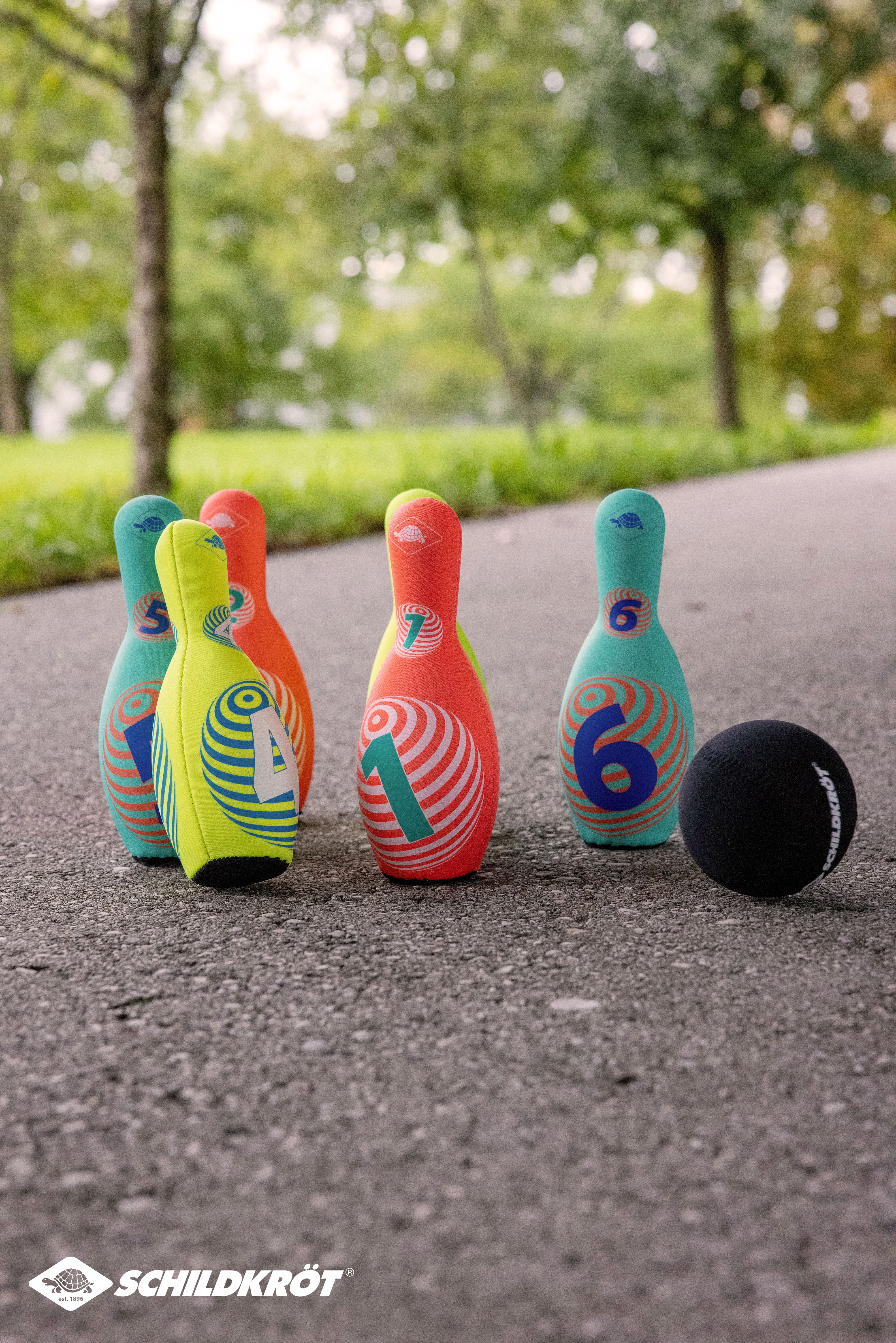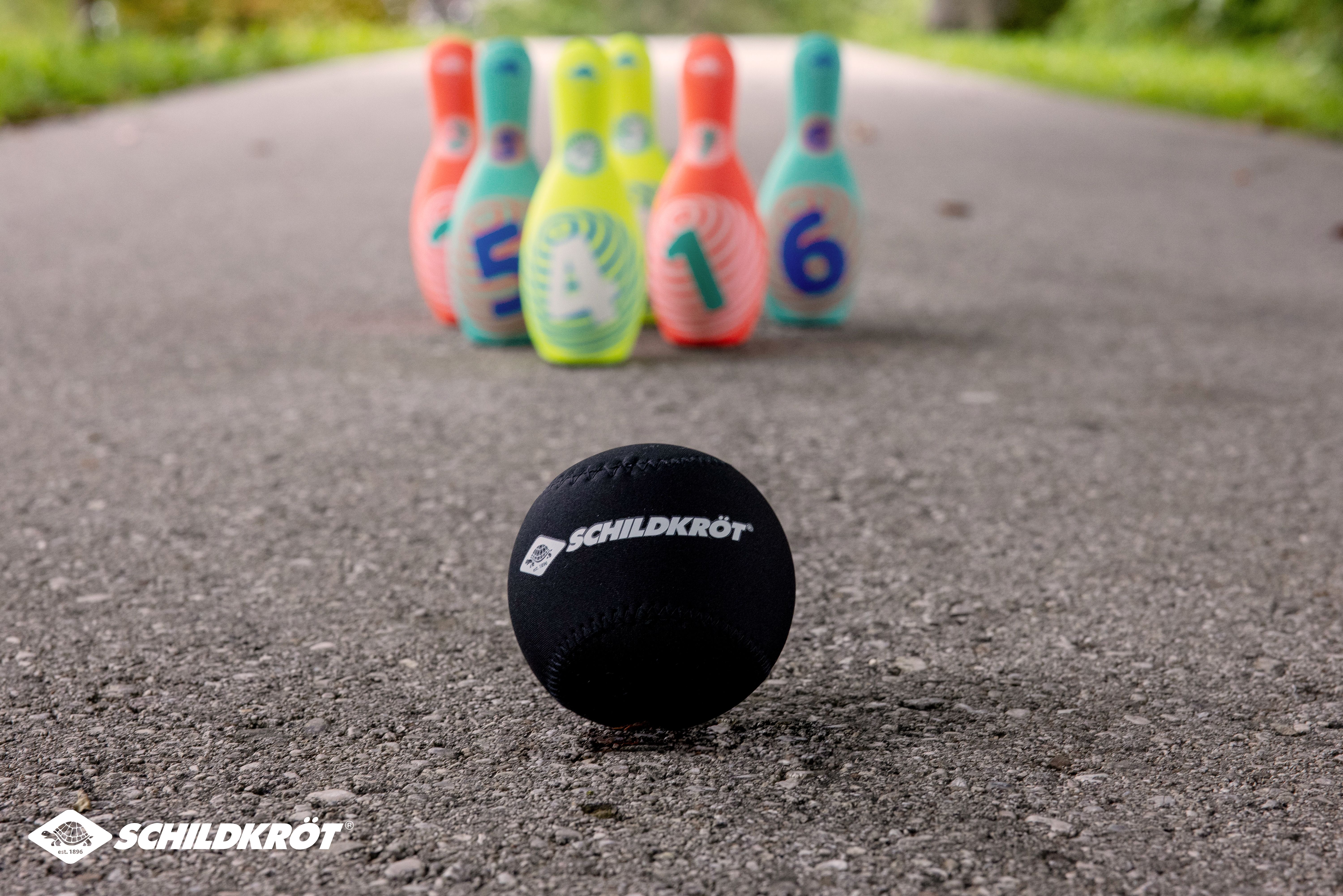 Ein besonderes Highlight des Neoprensortimentes ist das brandneue Kegel Set für Garten, Park oder Strand . Das Set besteht aus 3x2 Kegeln (Höhe 21,5cm) und 1 Kugel (Ø 9cm) mit wiederverschließbarer Netztasche zur praktischen Aufbewahrung. Und durch das salzwasserfeste Neoprenmaterial wird jeder Strand, Garten oder Pausenhof ab sofort zur Kegelbahn!