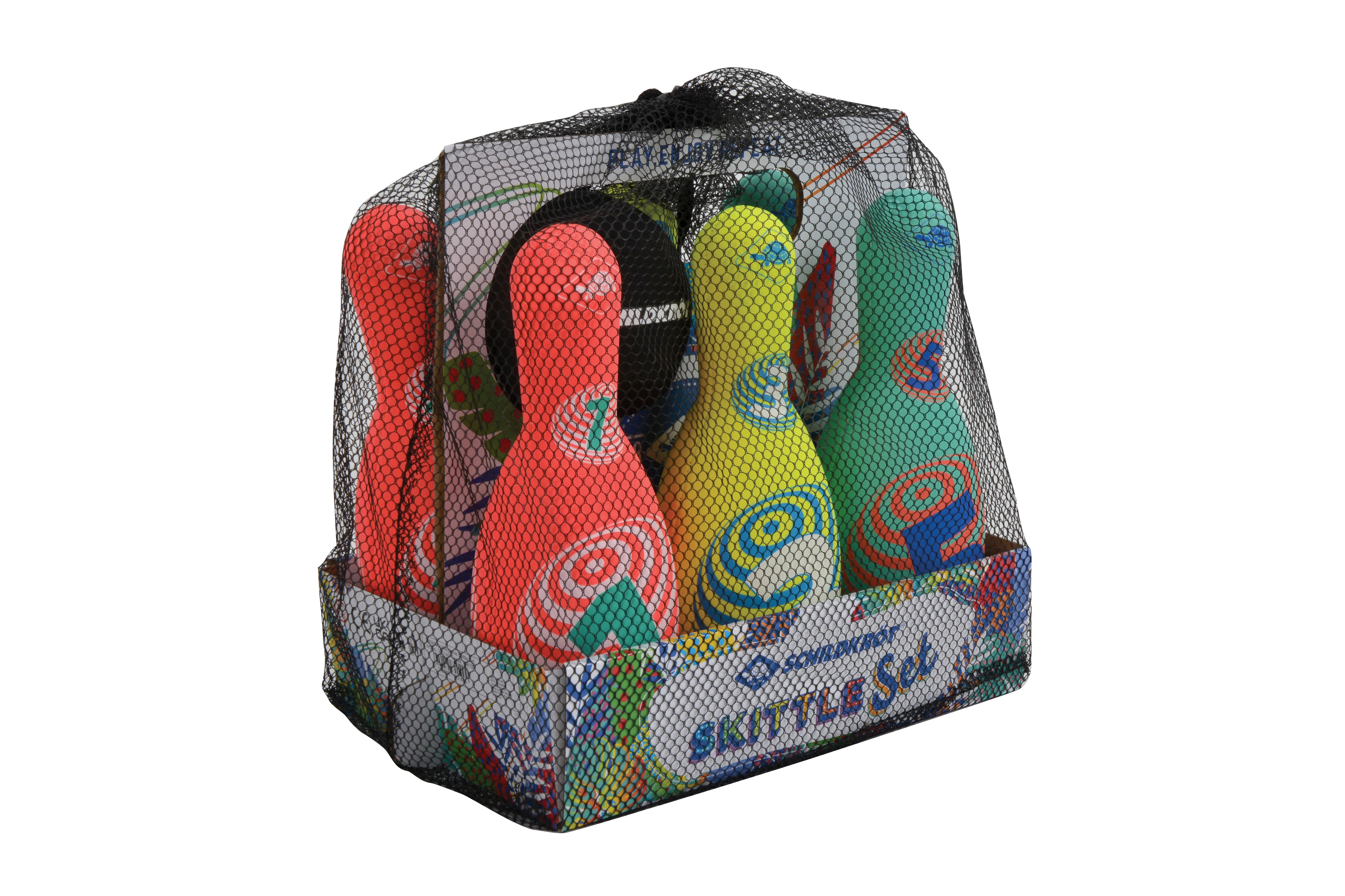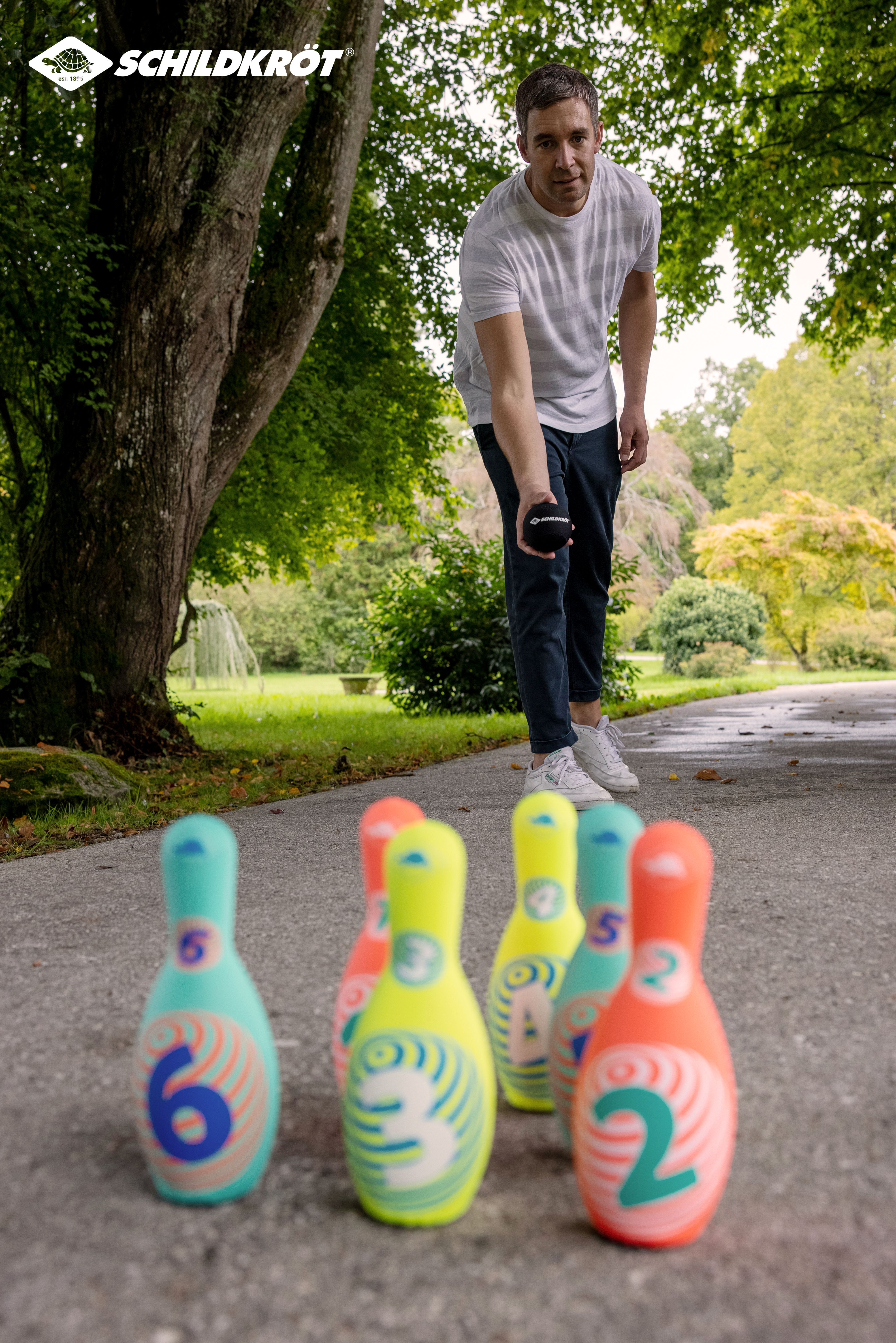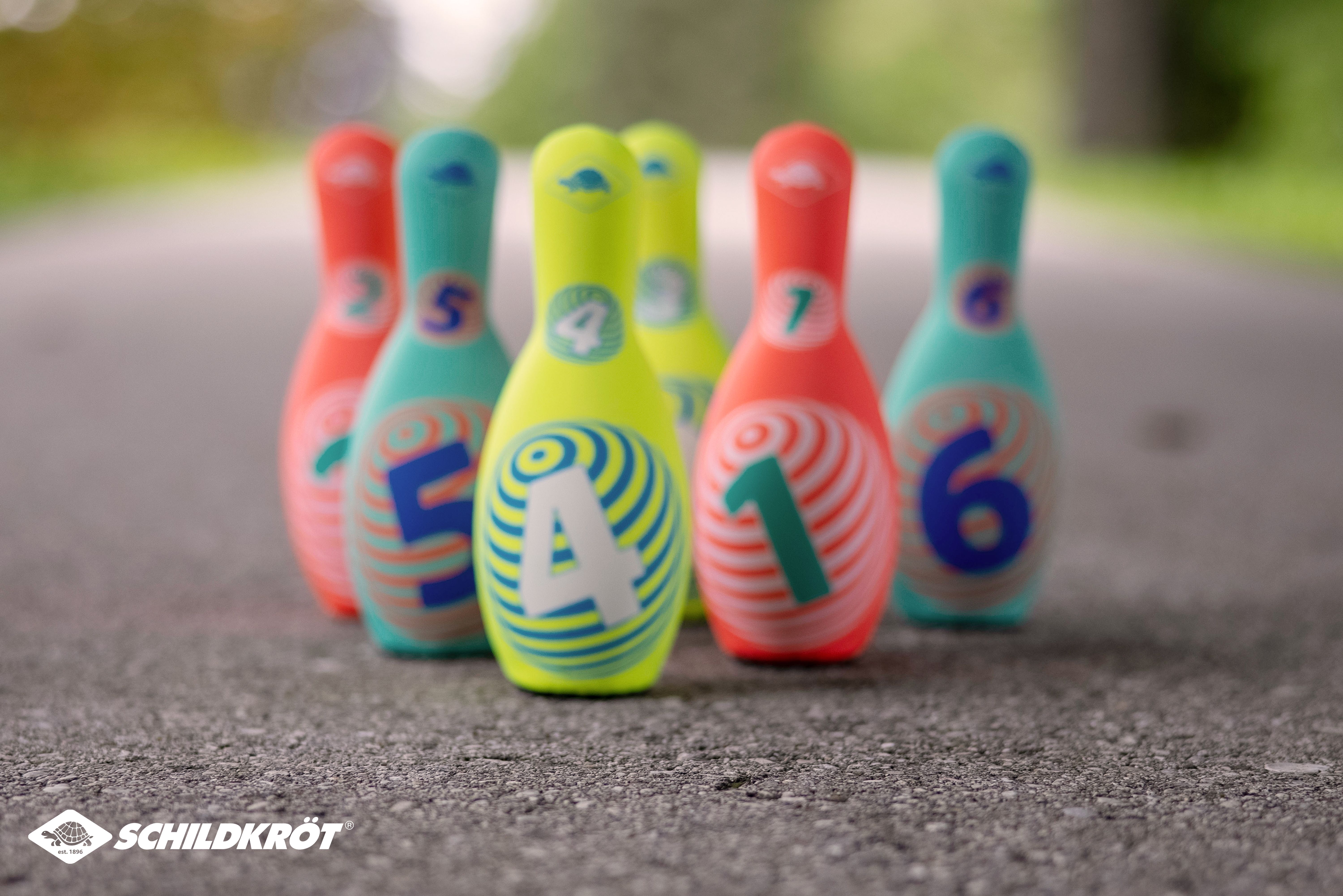 Ein besonderes Highlight des Neoprensortimentes ist das brandneue Kegel Set für Garten, Park oder Strand . Das Set besteht aus 3x2 Kegeln (Höhe 21,5cm) und 1 Kugel (Ø 9cm) mit wiederverschließbarer Netztasche zur praktischen Aufbewahrung. Und durch das salzwasserfeste Neoprenmaterial wird jeder Strand, Garten oder Pausenhof ab sofort zur Kegelbahn!