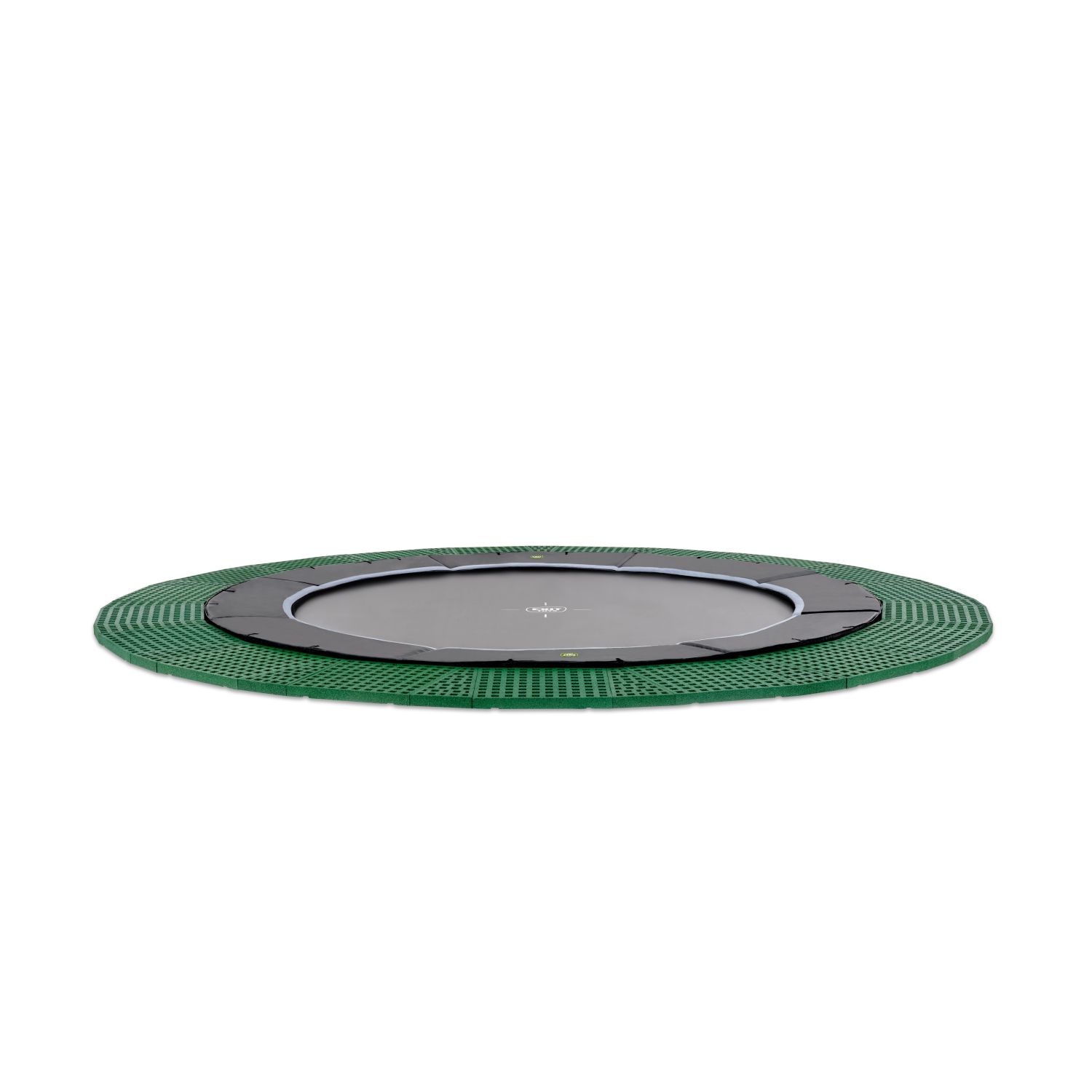 Das EXIT Dynamic ebenerdiges Trampolin ist ein rundes, mattschwarzes Bodentrampolin von absoluter Top-Qualität. Dieses robuste Trampolin wird serienmäßig mit den einzigartigen Freezone Sicherheitsplatten für optimalen Rundumschutz geliefert. Kinder mit viel Sprungerfahrung verbessern ihre Fähigkeiten mühelos auf ein höheres Niveau, denn dieses Trampolin hat doppelt konische Federn von nicht weniger als 25 cm Länge. Trotzdem bleibt das Trampolin bei den höchsten Sprüngen fest an seinem Platz, denn das ultrastabile Oberrohr ist 42 mm dick. Der Rahmen ist außerdem galvanisiert und pulverbeschichtet, um optimal vor Witterungseinflüssen und Rost geschützt zu sein. Das luxuriöse mattschwarze Finish und die subtilen Farbdetails verleihen dem Trampolin einen stilvollen, modernen Look. Und der Vorteil eines ebenerdigen Trampolins ist, dass der Schutzrand genau bündig mit dem Gras abschließt, so dass sich das Trampolin vollständig in den Rest des Gartens integriert.Bei so hohen Sprüngen steht die Sicherheit natürlich an erster Stelle. Die wird bei diesem Trampolin dank der einzigartigen EXIT Freezone Sicherheitsplatten gewährleistet. Die hochwertigen Antirutschmatten bieten zusätzliche Sicherheit, sind aber weniger auffällig als ein Sicherheitsnetz. Da der Rasen durch die Sicherheitsplatten hindurch wächst, sind sie kaum sichtbar.