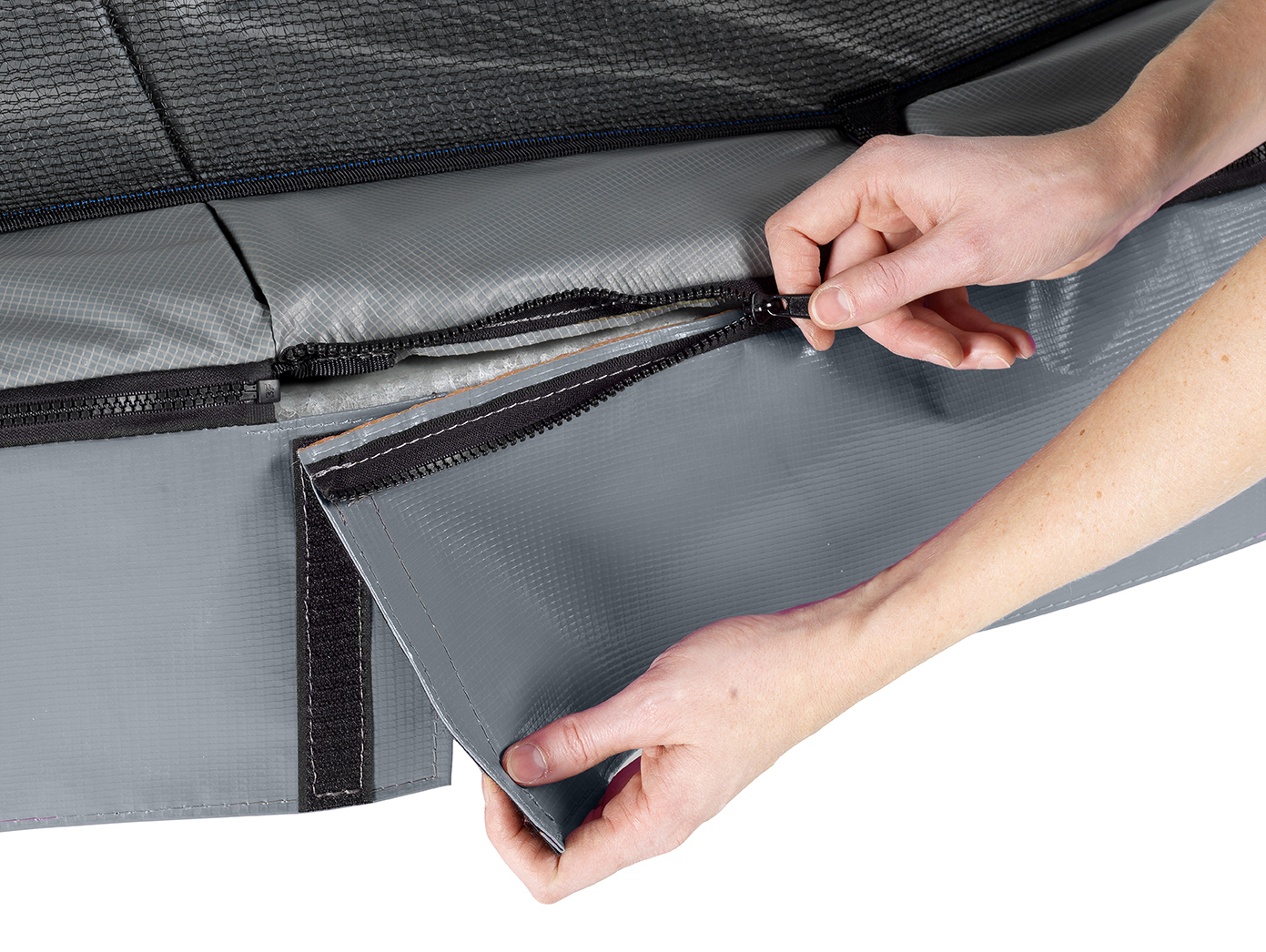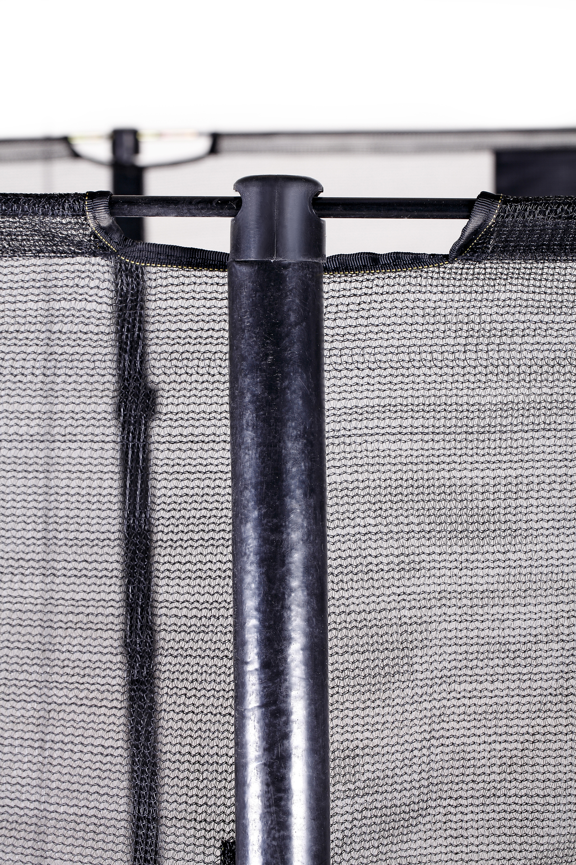 Das Silhouette Trampolin auf Füßen ist ein rundes Trampolin von guter Qualität. Das Sicherheitsnetz, dass standartmäßig zu dem Trampolin auf Füßen mitgeliefert wird, ist mit gebogenen Pfosten ausgestattet sodass das Netz straff gespannt ist. Der hochwertige Schutzrand bedeckt die galvanisierten Federn völlig und ist mit einem speziell entwickelten Fußschutzsystem versehen, sodass dein Fuß nicht zwischen die Federn kommen kann. Die kräftigen Federn stehen Garant für gute Sprungkraft. Der Rahmen des Silhouette Trampolins ist galvanisiert und pulverbeschichtet sodass Rost keine Chance hat. Erlebe endlos viel Springspaß auf den Silhouette Trampolinen!Zu allen Exit Toys Produkten können wir auf Anfrage Ersatzteile organisieren.