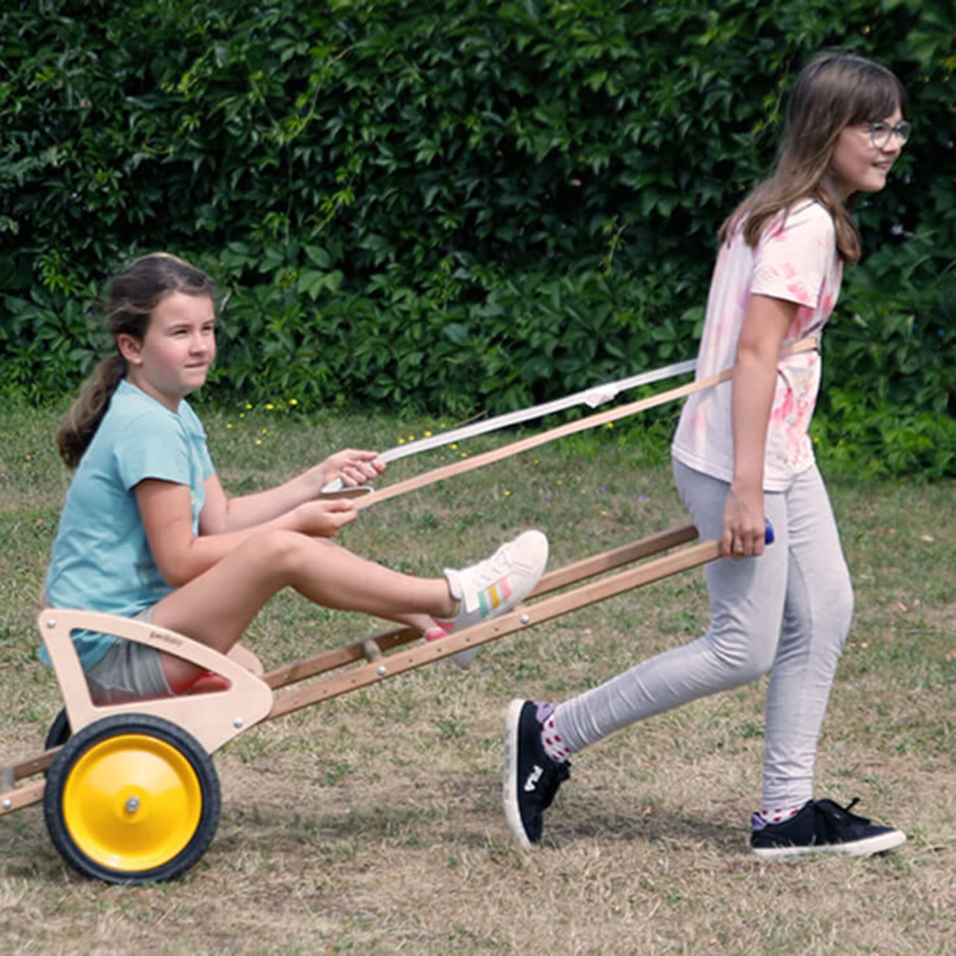 Das Pferdegeschirr aus Leder ist besonders für Partner-, Wett- und Rollenspiele in Kindergarten und Grundschule geeignet und fördert das Sozialverhalten und die Kooperation. Kinder können abwechselnd in die Rolle des Pferdes oder des Reiters schlüpfen und lernen dadurch sich abzustimmen und Rücksicht aufeinander zu nehmen.Kombination Pferd und Wagen