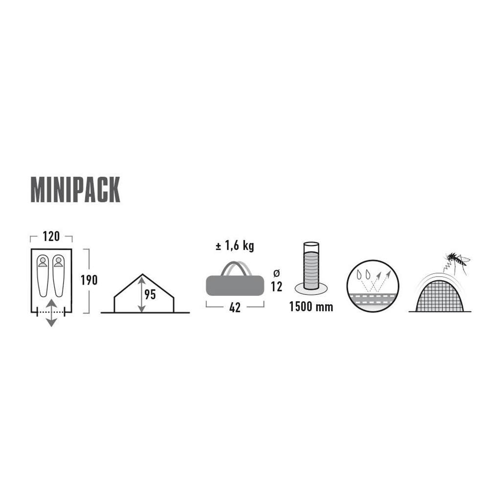 Zelt Minipack Der Evergreen unter den Hauszelten.Die Seitenwände symbolisieren die klassische Form mit bestem Raumnutzen. Es finden bis zu 2 Personen Platz.