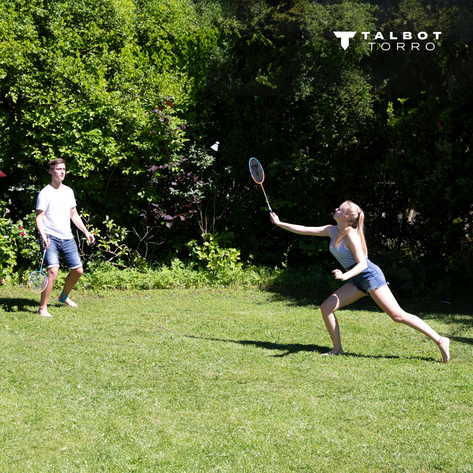 Hole dir jetzt den Bestseller der bekannten deutsch-britische Marke Talbot-Torro. Talbot-Torro ist bekannt für seine große Auswahl an wertigen Badminton-/ Federballsets. Das beliebte 2-Attacker Set besticht durch 2 Rackets aus gehärtetem Stahl und ist eines der meistverkauftesten Federballset in Deutschland (wenn nicht sogar das meistverkaufteste Set). Kopf und Schaft sind durch ein hochwertiges, stabiles, haltbares und komplett geschlossenes T-Stück verbunden, das sich nicht aufbiegen kann. Mit im Set enthalten sind 2 Kunststoff-Federbälle mit Korkfuß in formstabilder Dose zur sicheren Aufbewahrung (keine plattgedrückten Bälle). Alles verpackt in wertiger Tasche mit Reißverschluss und längenverstellbarem Tragegurt incl. Spielanleitung. Vernünftige Qualität für lange Spielfreude.