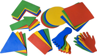Set mit 8 verschiedenen rutschfesten Formen in je 4 Farben. Das Set enthält: 4 Ecken, 4 Linien, 4 Quadrate, 4 Scheiben, 4 Dreiecke, 4 Pfeile, 24 Füsse, 24 Hände.Hier finden Sie weitere Produkte