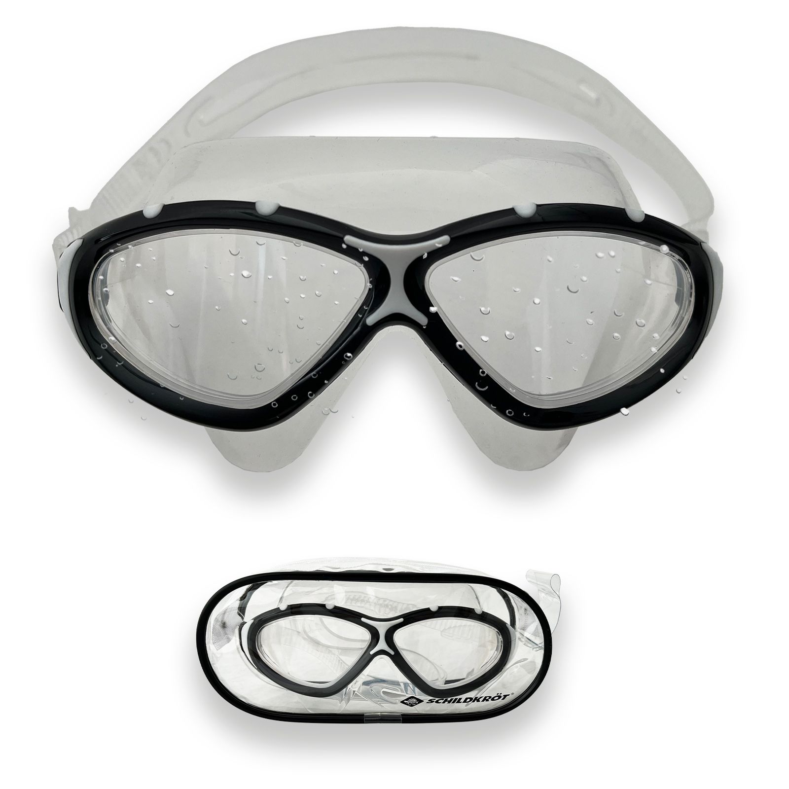 Die Schwimmmaske Java von Schildkröt ist vor allem bei Triathleten und Freiwasserschwimmer sehr beliebt, sie ist aber auch für Freizeitschwimmer optimal geeignet. Die weichen, flexiblen und vergleichsweise großen Dichtflächen (Soft-Silikon) sorgen für eine sehr gute Abdichtung, da sie auf der Stirn bzw. den Wangenknochen angenehm aufliegen und sich hervorragend der Gesichtsform anpassen. Die gebogenen Gläser gewährleisten eine 180°periphere Sicht. Zudem bietet das sehr flache Profil kaum Widerstand im Wasser.